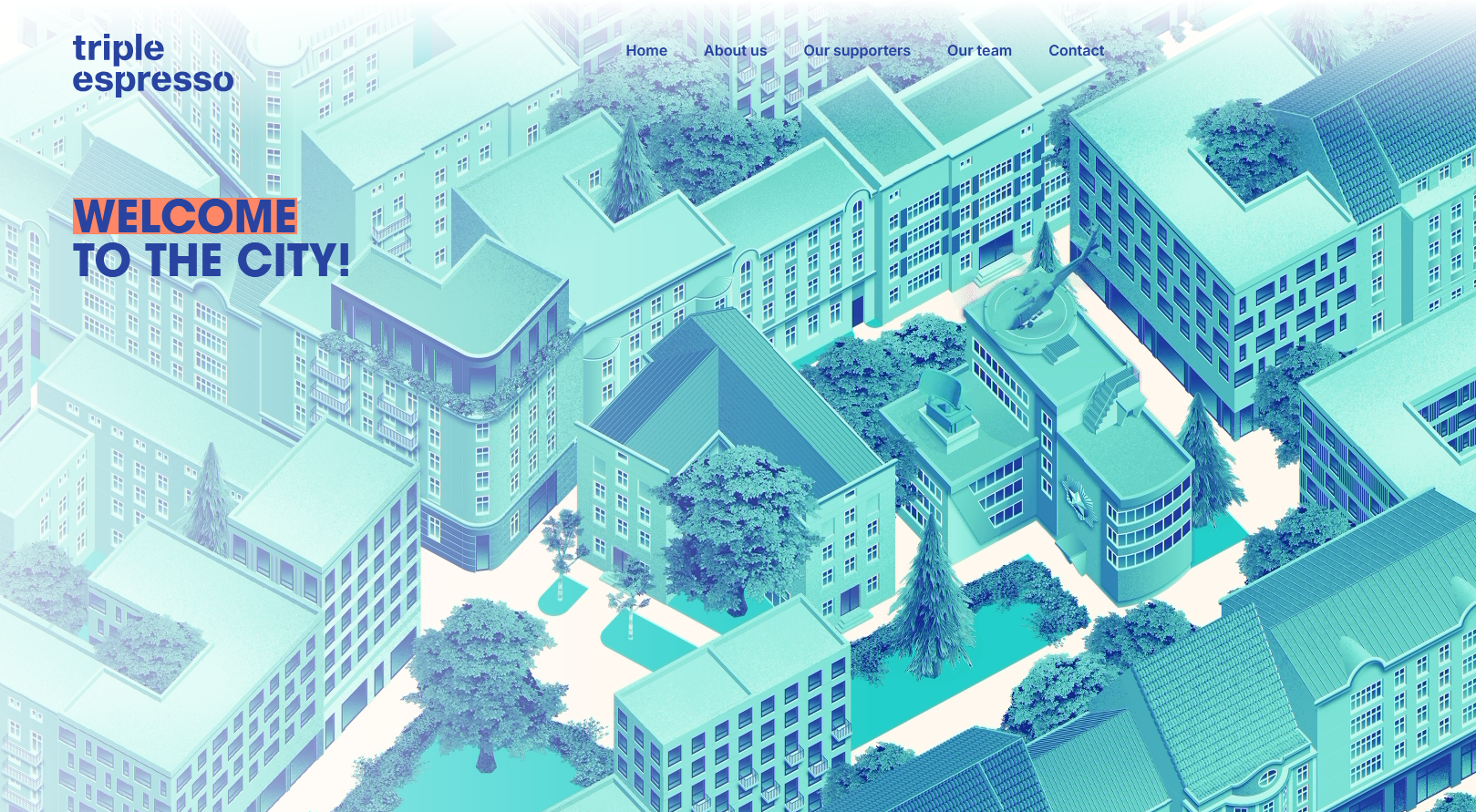 Triple Espresso to studio game devu, zespół pełen pasji, który łączy w sobie wyjątkową mieszankę kreatywności, doświadczenia i kompetencji. Ich strona internetowa odzwierciedla to podejście, stanowiąc niestandardowe rozwiązanie w porównaniu do klasycznych, jednoplanszowych stron firmowych. Opiera się ona na odkrywaniu informacji o firmie poprzez eksplorację animowanego miasta.
